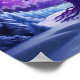 This whimsy seasonal poster features a mystical purple tree glowing with radiant lights stands center in a snowy, enchanted forest, symbolizing magic, life, and cosmic energy in a surreal winter scene. Finished in a mixed media art print.