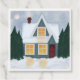 Wintery house with Christmas trees on a favour tag.