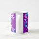 This mug has a wintry message with blue and white snowflakes on a purple background. Great for winter coffee, tea, or hot cocoa.