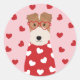 Wire Fox Terrier Dog Heart Glasses Pink Classic Round Sticker