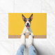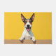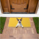 The soft citrus yellow background adds a bright and cheerful touch, perfect for welcoming entryways. Designed with extra space at the top and bottom, it allows easy personalization with names, welcome messages, or custom text—making it ideal for unique dog-themed doormats and thoughtful gifts.