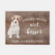 Funny beware of the wet kisser" Wire Haired Jack Russell Dog door mat set on a rustic faux background. Visit our shop to view a large assortment of dog breads