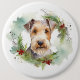 Wirefox Terrier Christmas Wreath Festive Pup 6 Inch Round Button