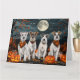 Unleash the spooky spirit with this eerie Halloween design featuring a pack of dogs under a dark, moonlit sky, surrounded by flying bats and glowing pumpkins. Perfect for those who love a touch of frightful fun with their furry friends!