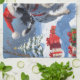 Wirehaired Pointing Griffon in Snow Christmas Hat Kitchen Towel