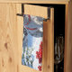 A spirited Wirehaired Pointing Griffon runs joyfully through the snowy winter scene, wearing a festive red Christmas hat. This lively design highlights the breed’s shaggy coat, hunting heritage, and affectionate personality while capturing the warmth and joy of the holiday season. A heartwarming winter moment full of festive charm.