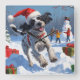 A spirited Wirehaired Pointing Griffon runs joyfully through the snowy winter scene, wearing a festive red Christmas hat. This lively design highlights the breed’s shaggy coat, hunting heritage, and affectionate personality while capturing the warmth and joy of the holiday season. A heartwarming winter moment full of festive charm.