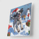 Wirehaired Pointing Griffon in Snow Christmas Hat Square Wall Clock