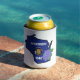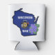 Wisconsin Flag & Flower Blue Violet Custom Name Can Cooler