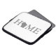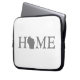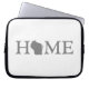Protect your laptop and share your love for your home state with a Wisconsin home state laptop sleeve featuring the word home with the letter O represented with the outline map shape of the Badger state of Wisconsin filled in with a grey background to match the lettering.