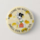 Welcome to Wisconsin, Smell our Dairy Air. Wisconsin Swiss Cheese head and cute cartoon cow Button