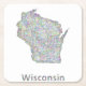 Colourful line art design map of Wisconsin state.