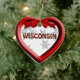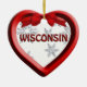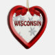 A graphic design of snowflakes in a 3D style red frame on a heart shape Wisconsin Christmas ornament. The ornament has text templates for your personalization. ©2012charmainepaulson