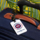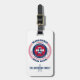 Personalize the front monogram and your details on the back of this luggage tag. Celebrate the history of Wisconsin with this patriotic circular typography design. Featuring the state name and key information, such as its capital, region, nickname for its residents, its time zone, and geographic coordinates. It's a great way to show your pride and appreciation for the state. Perfect for souvenirs or gifts.