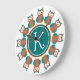 Wall clock features an original illustration of a cute brown and blue owl. Just personalize with your initial!