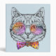 This design features a cute, cool cat wearing rainbow glasses and a polka dotted bow tie.