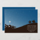 This design features a silhouette of the three wise men, also known as the three kings or magi, riding on camels towards Bethlehem. A bright star shines above and the blue starry sky gives a peace and tranquillity to the image.