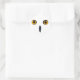 Closeup of an owl's face is nothing but the wise eyes and beak. Cool effects have added a touch of purple to the eyes and beak and a textured look.