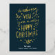 Wish You Merry Christmas Blue Gold Script Business Foil Holiday Postcard