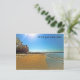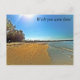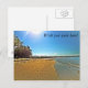 A beautiful sandy beach scene, with 'wish you were here!' quote postcard