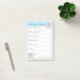 Baby shower game, wishes for baby with gingham elephant theme in blue. Easy peel and stick post it notes can stick to a board or wall after filled out by guests.