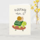 Hand illustrated a snail on a tortoise on a skateboard with, "Wishing you a speedy recovery" on the front and "Fingers Crossed you get better soon" On the inside which is completely customisable for you to add you to add your own personal message. As a small mother daughter duo we sincerely appreciate every click, like & follow, if you have a moment and like what you see, please click the Like bottom, it really does help.