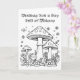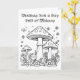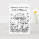 Cute adult colouring card for a friend. Cute whimsical retro mushrooms and flowers card wishing a friend a good day.
