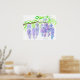 A poster featuring a wisteria tree branch in full bloom with cascading flowers in shades of soft purple painted with watercolor accented with spatter spots in the background. You can edit the text to fit your needs. In the Language of Flowers, Wisteria means welcome. Try this design on a t-shirt, notebook, or any of the other great items Zazzle can make!