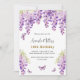 Wisteria purple florals butterflies birthday invitation