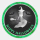 Witch and Bats Green & Black Happy Halloween Classic Round Sticker