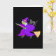 Witch and black cat on broom card