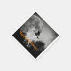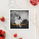 Fun Halloween paper party napkins feature black and white photograph of full moon with flying witch silhouette and customizable text overlay