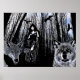 Witch and werewolves in the forest fantasy dark silhouette original digital art poster