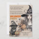 Elevate your Halloween event with this Halloween party invitation card. Meticulously crafted to capture the eerie essence of the season, this invitation stands out with its unique incorporation of a poem, setting it apart from standard invitations. The design features a captivating fusion of a mischievous witch and a mysterious black cat, adding an extra layer of intrigue.