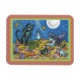 WITCH & BLACK CATS RAKING LEAVES, FUNNY HALLOWEEN MAGNET
