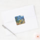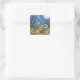 WITCH & BLACK CATS RAKING LEAVES, FUNNY HALLOWEEN SQUARE STICKER