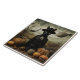 This whimsical Halloween artwork features a stylish black cat dressed as a Victorian witch, surrounded by a quirky array of jack-o'-lanterns under a surreal autumn sky. A perfect blend of spooky and charming, this fantasy print is ideal for Halloween lovers, gothic decor fans, and anyone who enjoys magical realism with a feline twist.
