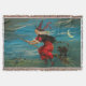 Witch Flying Black Cat Crescent Moon Throw Blanket