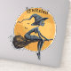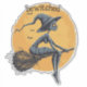 This is a cute halloween sticker that features a witch flying over the full moon on her broom stick. You can customize the default text "bewitched."