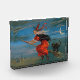 Witch Flying with Black Cat on Halloween Night Photo Block