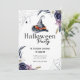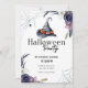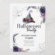 Join us for a Halloween party that's enchantingly elegant! This beautiful and unique invitation perfectly blends spooky fun with sophisticated floral style. The design features a classic witch's hat at its centre, surrounded by beautiful watercolor bouquets of moody purple and white flowers. Delicate spiderwebs and a dangling spider add the perfect touch of Halloween spirit. With its mix of classic serif and modern script fonts, this invitation is ideal for a stylish costume party, a "witches' night out," or any Halloween gathering that calls for a touch of class.