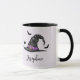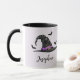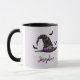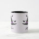 Start your mornings with a festive touch using this Halloween mug featuring a witch hat and flying bats on a light lilac background. Beneath the design is a personalizable text area where you can add your name or a short seasonal message.