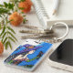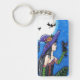 "Witch & Her Bat-Cats" Rectangular Key chain. Whisper is a pretty little Witch with a pretty little purple hat, sitting on a stack of Magick books with her favorite friends, the Bat-Cats! Made from my own acrylic painting.