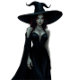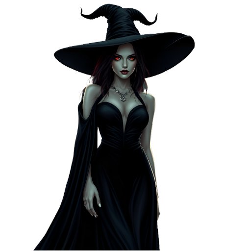 This captivating digital artwork portrays a powerful witch in a sleek black gown with glowing red eyes and an elegant witch's hat.