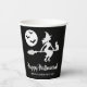 Witch On A Broom Black And White Happy Halloween Paper Cups