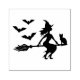 Witch On A Broom With A Cat And Three Bats Rubber Stamp