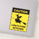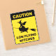 Young flying witch riding a broom. Vector icon with customizable colour. Custom text.