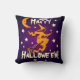 Witch on Front Cat on Back Happy Hallowe'en Purple Throw Pillow