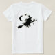Halloween themed coffee mug with a vintage graphics of a witch, cat, broom and moon.