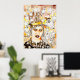 This poster depicts my original watercolor and marker painting of an irritated-looking witch surrounded by toadstools and little ghosts. I had a great time making this painting and it's probably one of my favorites. If you look closely, you can see a grumpy-looking little moon man hanging out amongst the stars in a chaotically colorful sky. Enjoy.